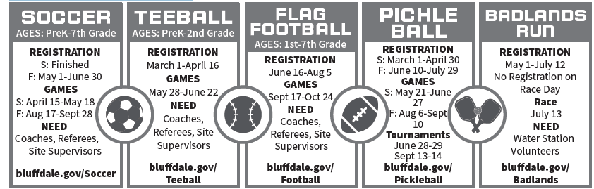 I am excited to announce our growing recreational options. This year we are offering teeball (Pre-K - 2nd grade), spring and fall pickleball leagues and tournaments, flag football (1st-7th grade) and our annual Badlands 5K/10K run along with our spring and fall soccer! Thank you to Skylar Killian, our recreation coordinator. I am grateful for all his hard work coordinating logistics for each activity. Our Parks Department also works hard to make sure our parks and courts are play ready.