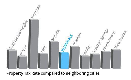 - Bluffdale only received about 13.59% of your total property taxes paid last year - any increase the city proposes only affects that 13.59% portion. Most of your property taxes paid go to our schools and the county.